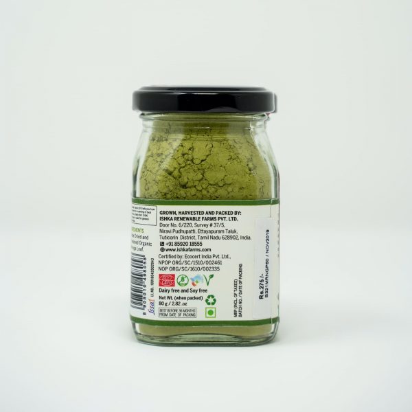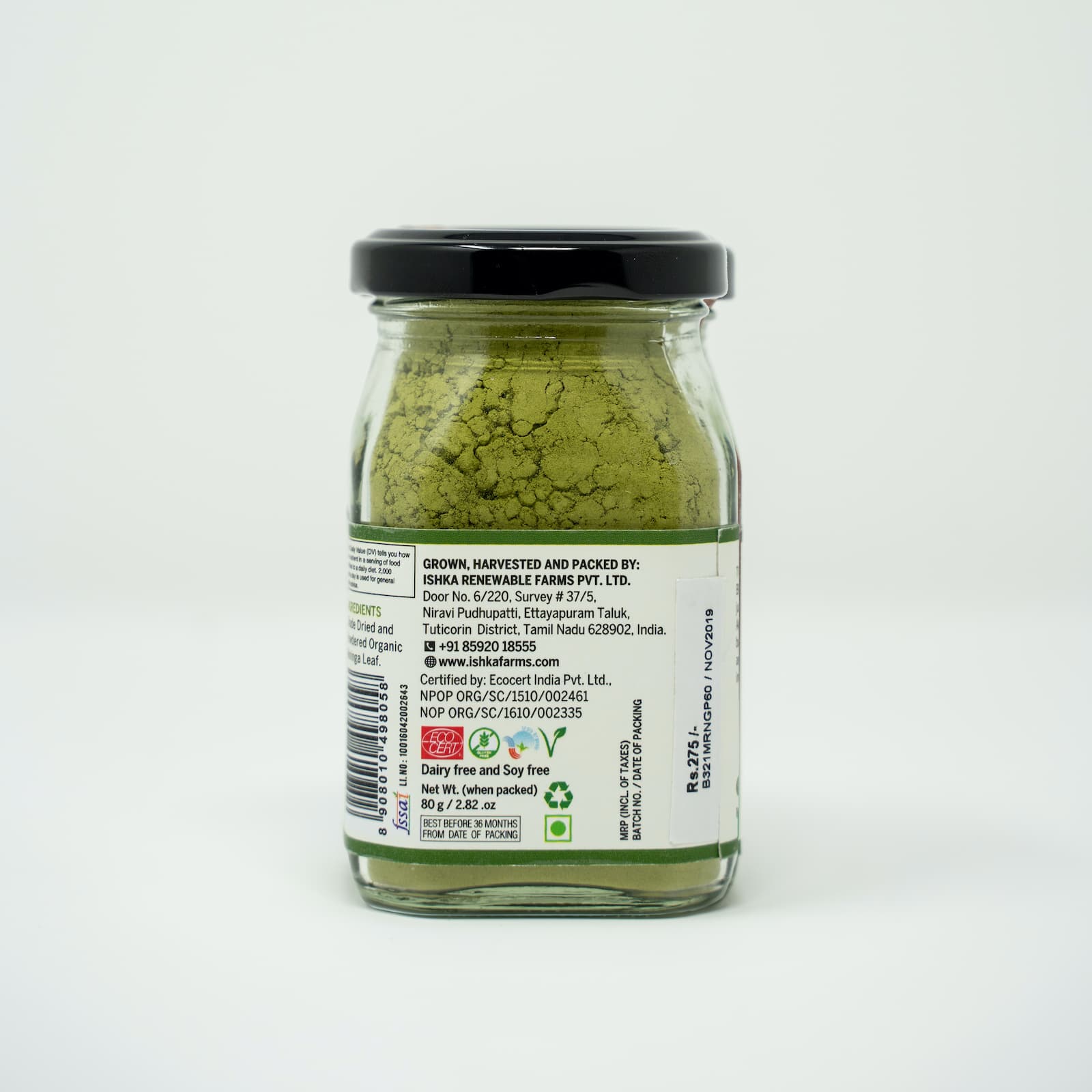 Our moringa is produced using ethical, fair trade and sustainable standards. It is organically grown by happy farmers at Ishka Farms in the Tamil Nadu region in India.